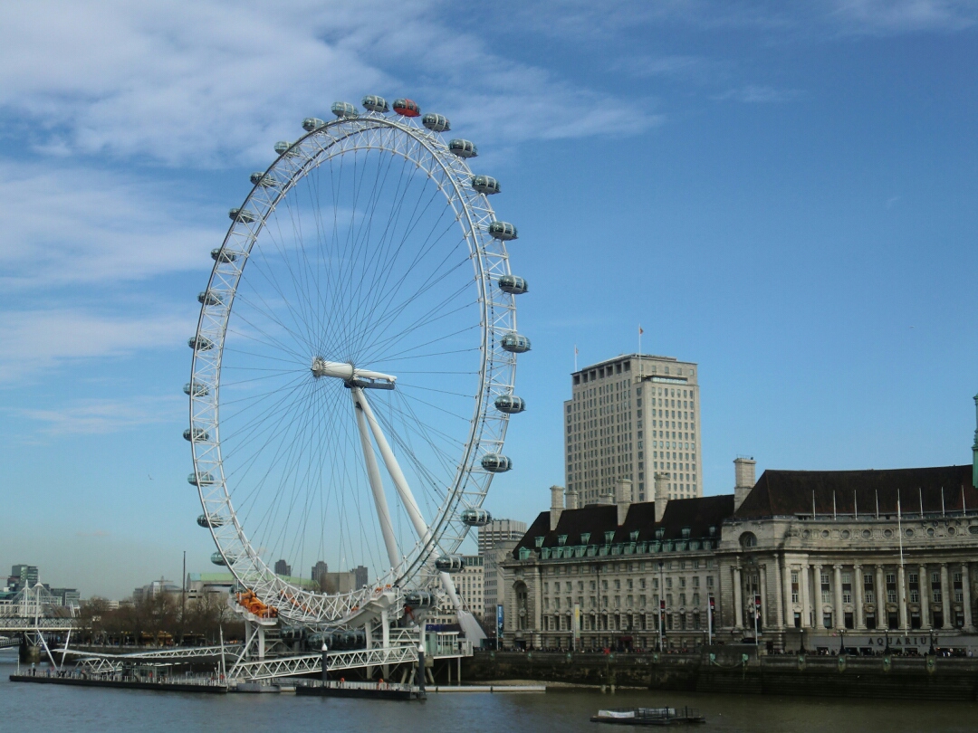テムズ川を渡る橋の上からロンドン・アイ。